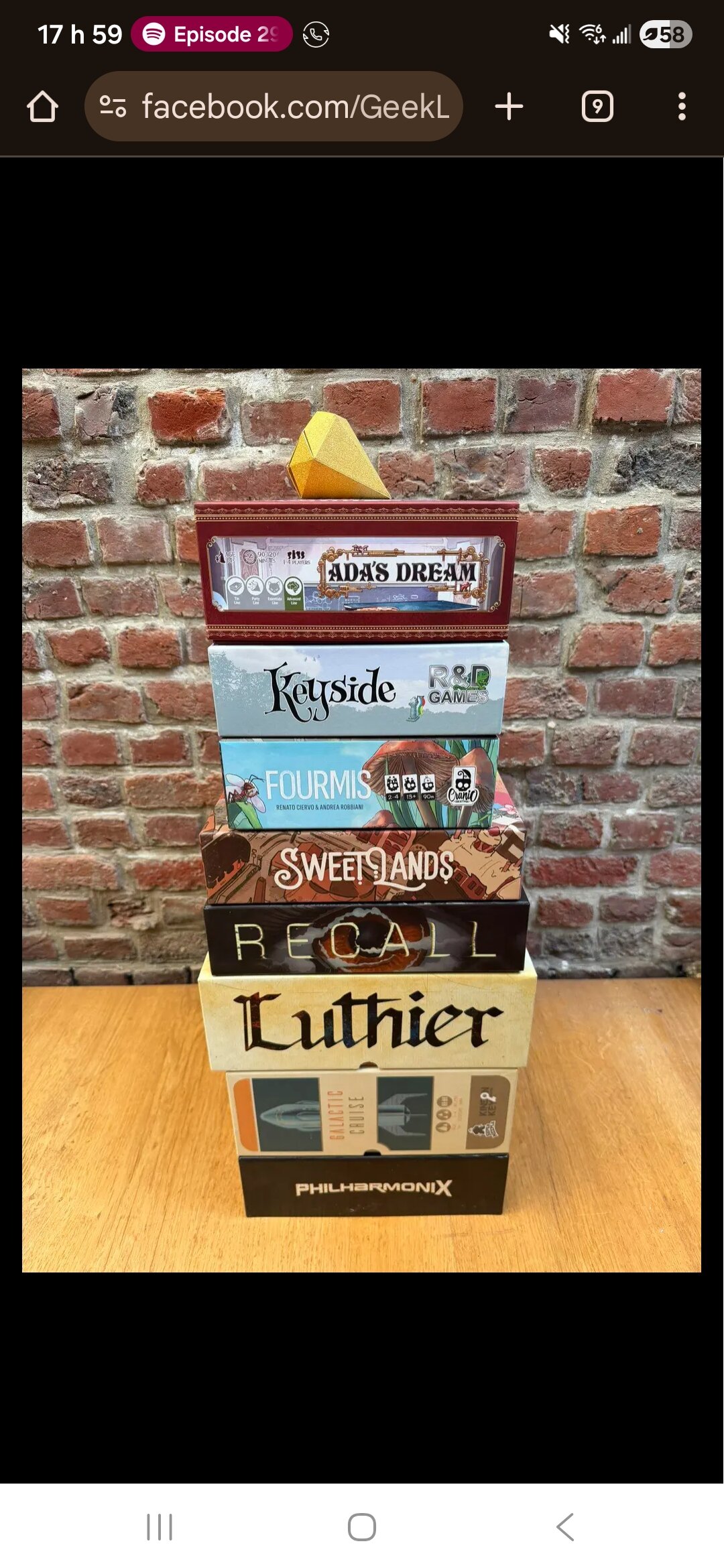 Pour le moment, voici mon classement. Je devrais essayer Keyside et Ada's Dream dans les 2 prochaines semaine normalement. Aucun intérêt pour Luthier et Philarmonix selon ce que j'ai lu des deux jeux. Sweet Lands - Excellent jeu, mais un peu long. C'est bin correct, je vais le garder à 2 joueurs. Recall - Assez streamliné et pas trop long, mais rempli de grosses décisions à chaque tour. Une belle surprise pour moi. Galactic Cruise - J'ai beaucoup aimé mes 3 premières parties. Mais, il n'est pas sorti depuis l'été... Je vais devoir y remédier. Fourmis - Le flow est moins naturel à la première partie. Bien hâte d'y rejouer. J'ai l'impression qu'il va monter à la 3e place.