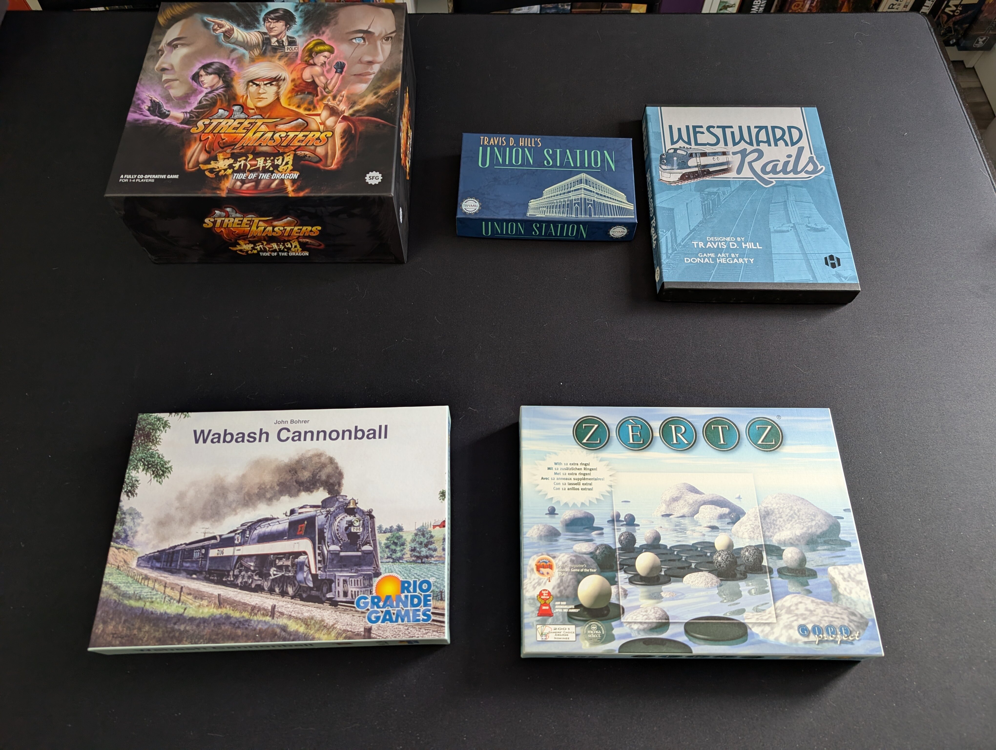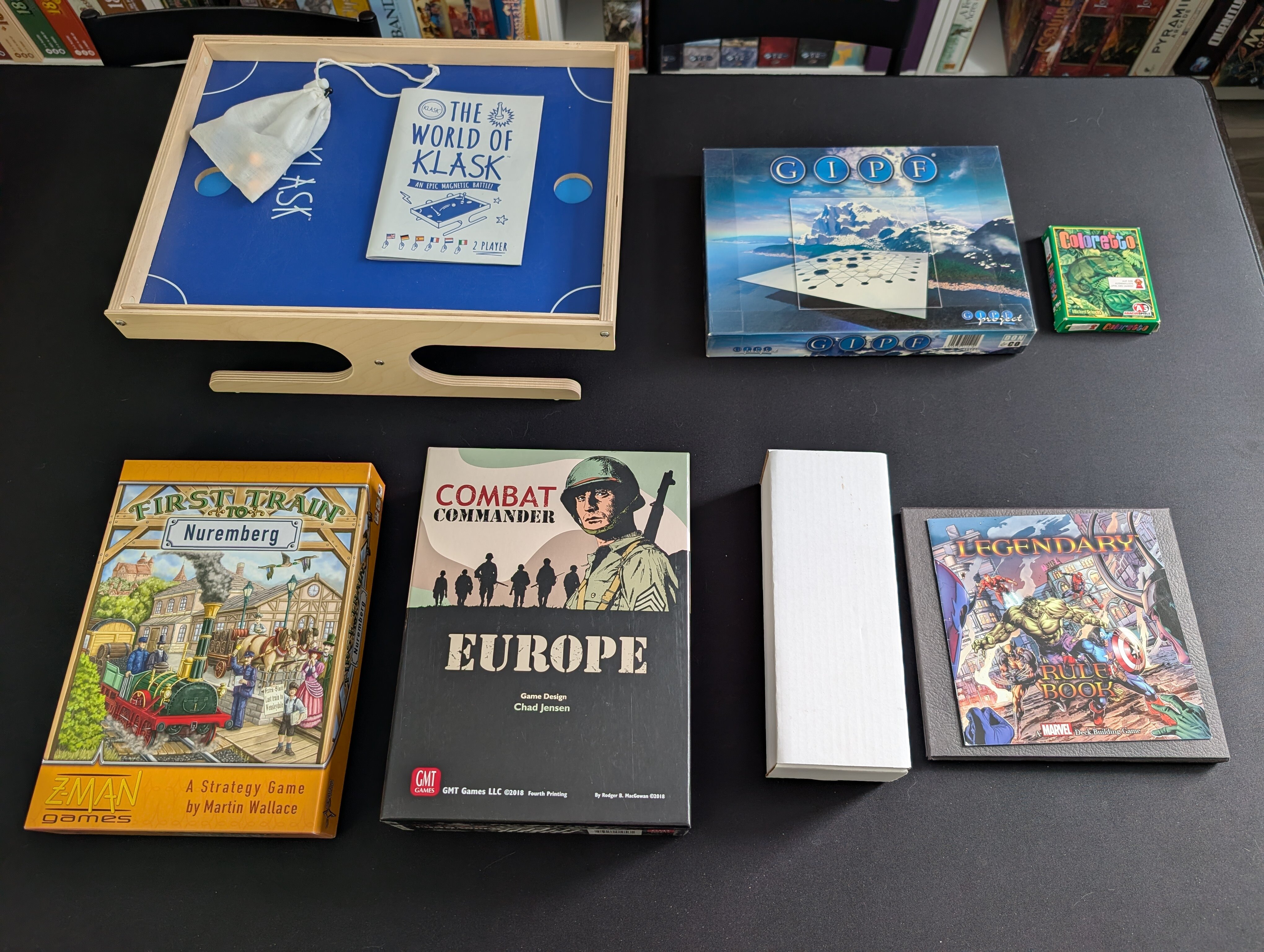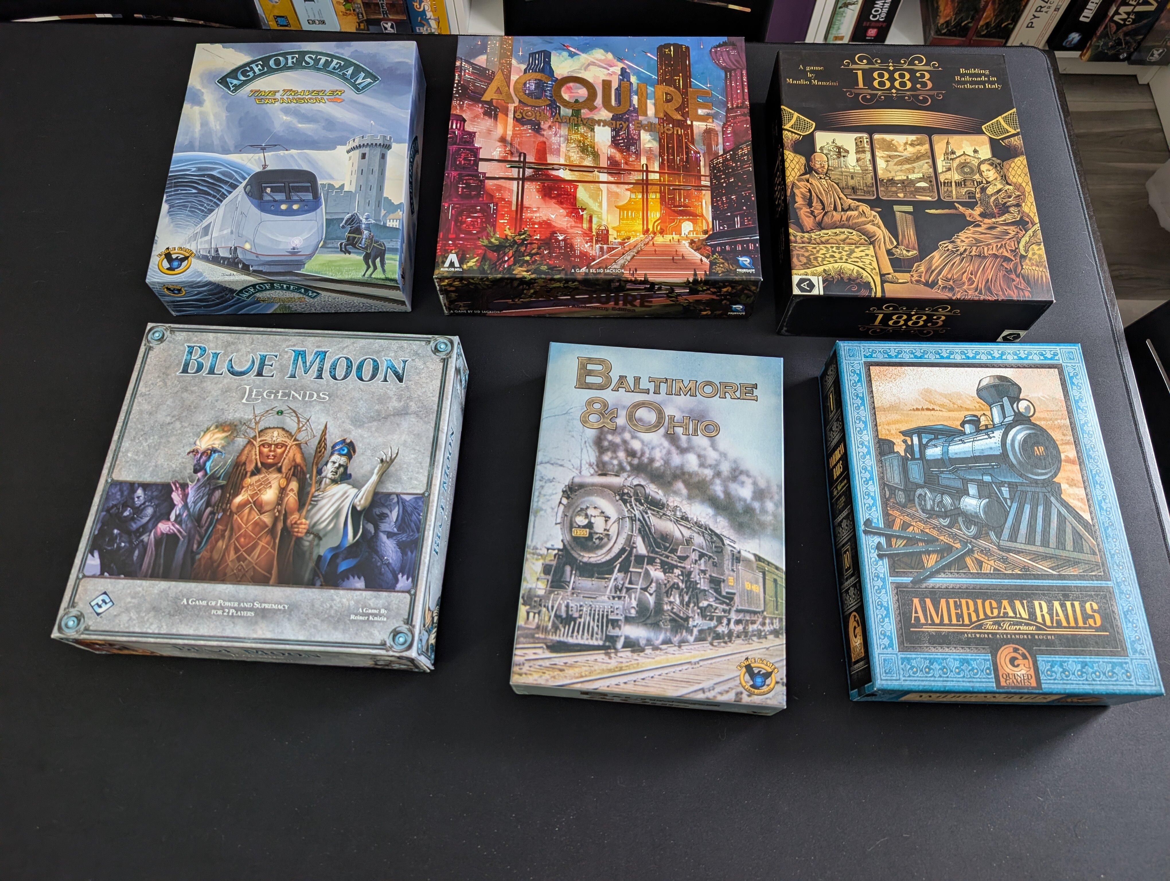 Simonc17 Posted July 20, 2020 Posted July 20, 2020 De Boisbriand mais possibilité de se rencontrer chez Toujours Jeux à Laval les vendredis ou samedis. Je peux fournir des photos ou des détails supplémentaire sur demande. Voice la liste des jeux que je cherche en échange. https://boardgamegeek.com/collection/user/Simonc17?want=1&subtype=boardgame&gallery=large&ff=1 VF=Version Française VA=Version Anglaise ML=Multilingue (Au moins français et anglais) -1883: Building Railroads in Northern Italy, VA, 50$ -Acquire: 60th Anniversary Edition, VA, 95$ -Age of Steam Expansion: Time Traveler, VA, 30$ -American Rails, VA, 40$ -Baltimore & Ohio, VA, 35$ -Blue Moon Legends, VA, coin de boîte déchirée le reste en très bon état, inclus insert folded space, 80$ -Coloretto, VA, manque le livret de règles, 10$ -Combat Commander: Europe, VA, 75$ -First Train to Nuremberg, VA, 30$ -GIPF, MULTI, il y a du ruban sur le contour de la boîte et les pièces sont numéroté, 15$ -KLASK, MULTI, manque la boîte d'origine, 40$ -Legendary: A Marvel Deck Building Game, VA, manque la boîte d'origine, 20$ -Merchant of Venus (Second Edition), VA, 70$ -Pagan: Fate of Roanoke, VA, 40$ -PÜNCT, MULTI, 30$ -Pyramid Arcade, VA, 80$ -Steam: Rails to Riches, VA, 80$ +Steam Barons +Steam: City Growth Special Contracts +Steam: Five Way Town +Steam: Map Expansion #3 +Steam: Map Expansion #5 -Street Masters III: Tide of the Dragon, VA, 45$ -Submarine, VA, 10$ -Titicaca, VA, 20$ -Union Station, VA, 40$ -Wabash Cannonball, VA, 30$ -Westward Rails, VA, 40$ -ZÈRTZ, MULTI, 30$