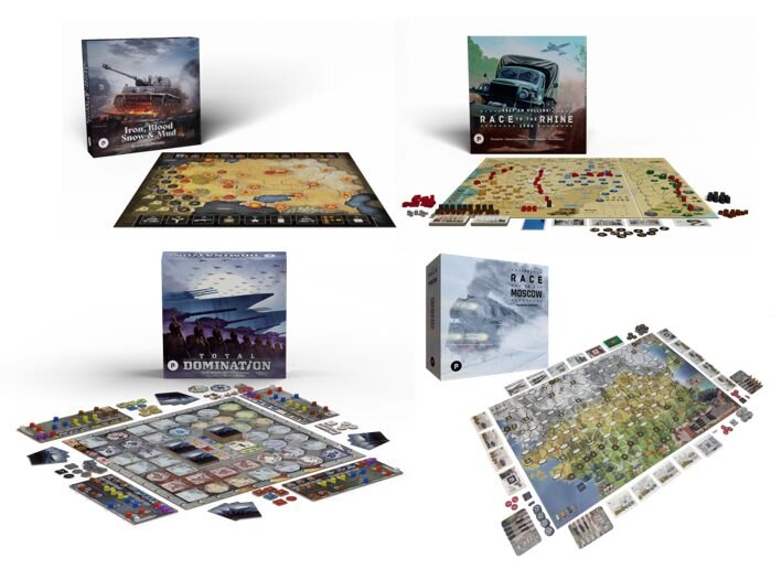 PHALANX France Posted August 20 Author Posted August 20 Vous cherchez un jeu sur la Seconde Guerre mondiale ? Nous en avons 4 ! 𝐈𝐫𝐨𝐧, 𝐁𝐥𝐨𝐨𝐝, 𝐒𝐧𝐨𝐰 𝐚𝐧𝐝 𝐌𝐮𝐝 : Jouez le front de l'Est en une heure, avec des règles simples mais qui ne sacrifient rien à l'historicité. 𝐑𝐚𝐜𝐞 𝐭𝐨 𝐭𝐡𝐞 𝐑𝐡𝐢𝐧𝐞 : Notre grand classique axé sur la logistique, qui retrace les offensives rapides des Alliés à travers la France et les Pays-Bas en 1944. Consommez du carburant, des munitions et de la nourriture pour faire avancer votre corps d'armée sur la carte. 𝐑𝐚𝐜𝐞 𝐭𝐨 𝐌𝐨𝐬𝐜𝐨𝐰 : Suite de Race the Rhine, toujours axé sur la logistique, mais se déroulant pendant l'opération Barbarossa, en 1941. Les armées allemandes avancent vers les objectifs de Moscou, Rostov ou Leningrad et doivent gérer à la fois l'approvisionnement ferroviaire et routier. 𝐓𝐨𝐭𝐚𝐥 𝐃𝐨𝐦𝐢𝐧𝐚𝐭𝐢𝐨𝐧 (VF) : jeu stratégique rapide à 4 joueurs basé sur le tirage de cartes à usages multiples. Un véritable warteau - pas de dés ni de tables, simplement vos décisions et la gestion des cartes. Jouez toute la Seconde Guerre mondiale en 80 minutes grâce à un moteur de jeu totalement unique. Les jeux PHALANX sont dispos chez votre ludicaire et dans notre boutique en ligne : https://urlr.me/HBGsEC